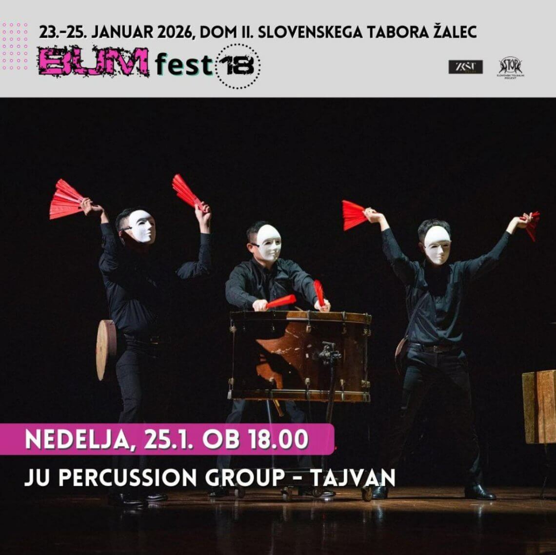 Prisrčno vabljeni na koncert vrhunskih tajvanskih tolkalistov Ju Percussion, ki bo v nedeljo 25. januarja 2026 ob 18ih v Žalcu, v sklopu slovenskega edinega tolkalskega festivala BUM-fest. Skupina združuje dvajset izjemnih tolkalcev in tri rezidenčne skladatelje.